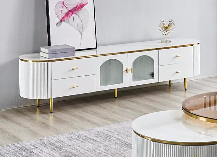 * Frame – MDF with Paint Finish, Fluted Glass, Gold Plated Stainless Steel